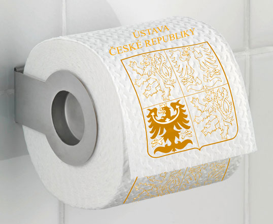 Státní tiskárna cenin dnes na zcela mimořádné tiskové konferenci představila první pamětní předmět spojený s druhým volebním obdobím prezidenta Miloše Zemana. Sběratelé a bohužel i spekulanti si tak mohou od dnešního dne až do vyčerpání zásob objednávat inaugurační toaletní papír. Jedná se o super jemný třívrstvý toaletní papír, jehož základem je prémiová ruská bavlna. Na každém z 200 XL útržků v roli je ve zlatě, nebo stříbře, v závislosti na variantě, vyražen symbol Ústavy a státnosti České republiky.
